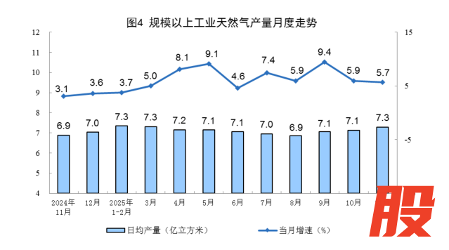 国家统计局:11月份规上工业天然气产量219亿立方米,同比增长5.7%国家统计局:11月份规上工业天然气产量219亿立方米,同比增长5.7%